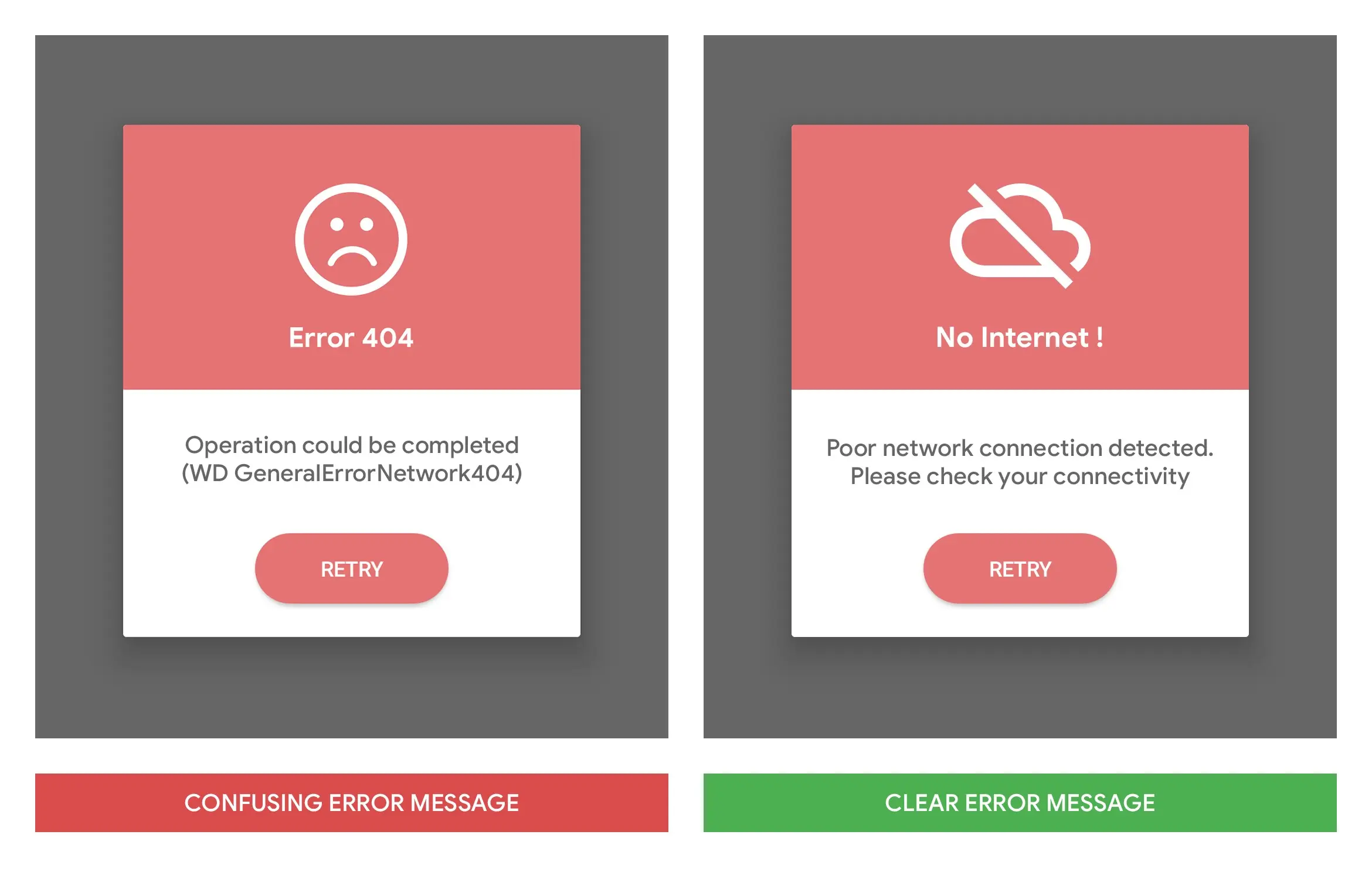 But if the above is impossible, there are several things that you can do to improve the user experience when an error occurs. One of these is to very clearly explain what’s going on and why the error has happened.