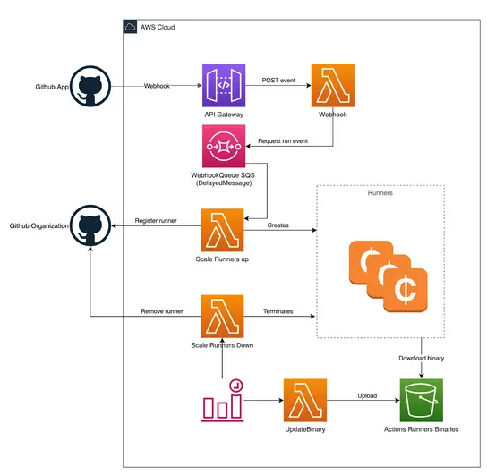 This module takes care of creating the AWS infrastructure to host action runners on spot instances. It provides lambda modules to orchestrate the life cycle of the action runners.