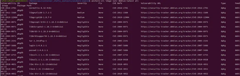 Clair is an open-source container static vulnerability analyzer and the most popular open-source scanning tool. As seen in the comparison above it tops Anchor and has similar results to Trivy. However, it takes a lot of time to run as CLI. Starting Clair from scratch takes about 20 to 30 minutes because the database needs to be filled up with CVEs. Clair needs to access the container layers and therefore you need remote access from Clair to your build job. It’s much more suited to work as a standalone service. I would personally recommend Trivy as it’s easier to use and gives similar results. Nevertheless, that’s a matter of personal preference and choosing Clair should also be considered as a valid option.