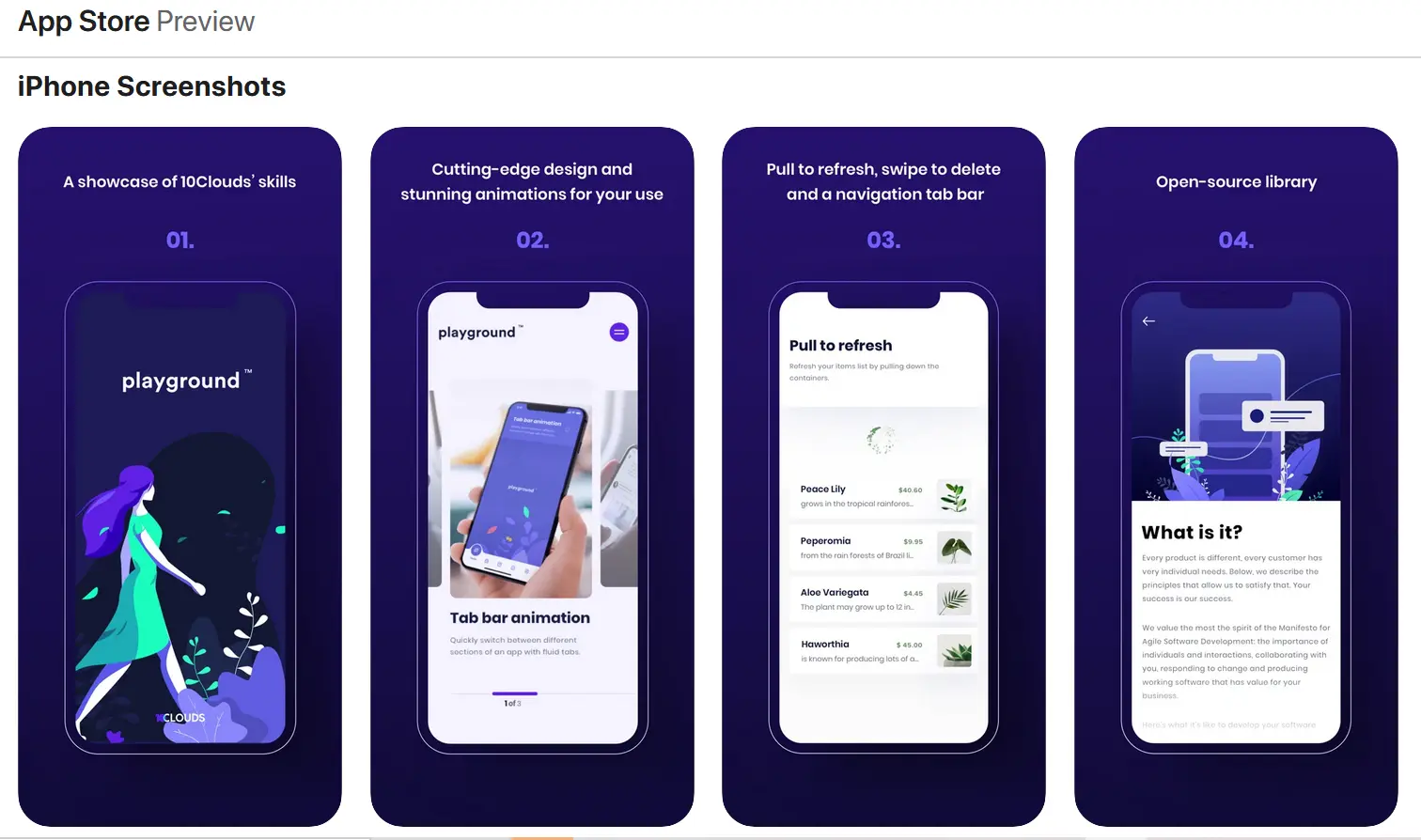 Another point to be mindful of is that your screenshots should be taken straight from the real device or simulator because your design files will often be different from the final look. Take a look at our two examples below to see what we mean: