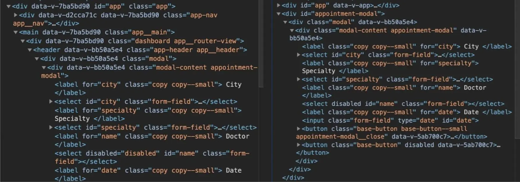On the screenshot below you can see that when Teleport is used, our modal is a sibling of the #app div. This is advantageous in many ways, for example for styling purposes.