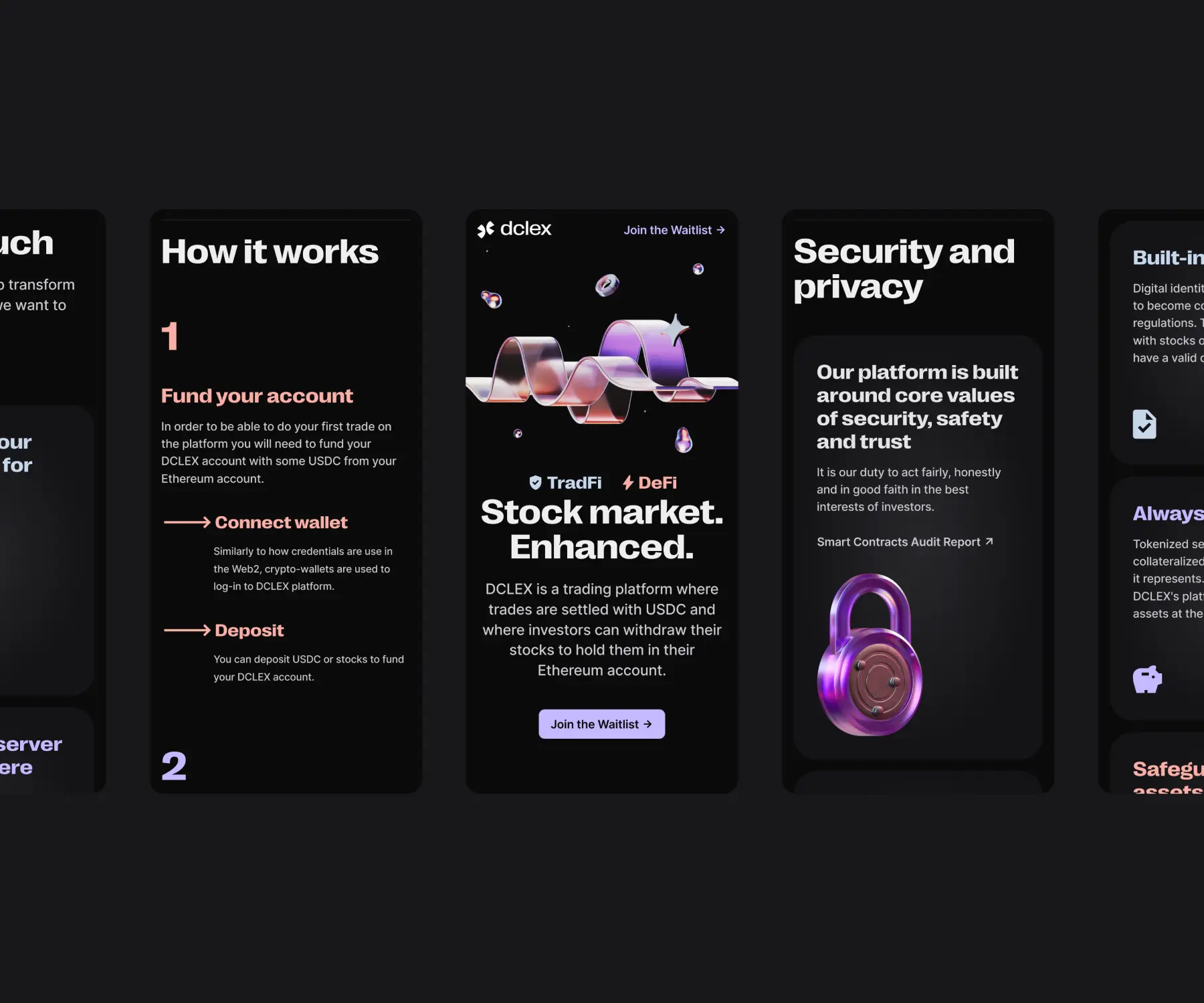 DCLEX is a revolutionary blockchain-based stock exchange, where users settle trades with USDC. Then, they can withdraw their stocks to hold them in their Ethereum account. The platform focuses on transaction safety and lets you hold securities in self-custody. The democratization of stock trading lies at the heart of the platform as DCLEX presents a community-driven approach. Its users make decisions about the product's future together.