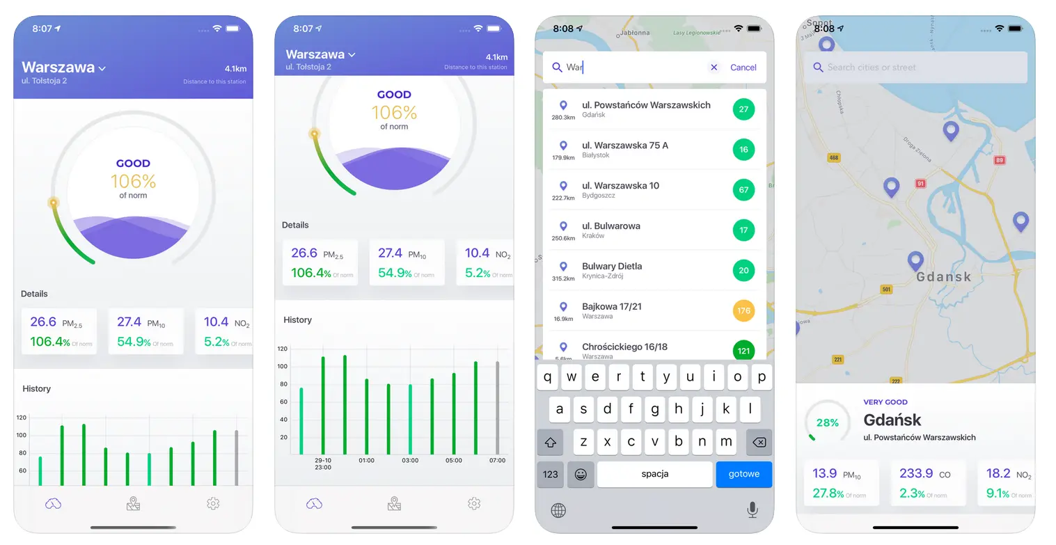 SmogDog is our own app, which tracks air pollution in Polish cities, notifying users when levels are above-average. It includes a special iOS smog widget and a machine learning component - we’ve used a regression model, which is based on past data on weather forecasts and location, in order to predict pollution levels.