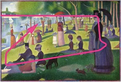 Painters and other artists over the centuries have used this feature of the human mind as well. Below you can see the painting Sunday Afternoon on the Grande Jatte Island by Georges Seurat.