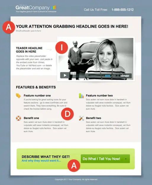 4. Action – The final stage is to have the client perform the desired task. This task could be signing up for a newsletter, registering for a new application, or buying a product. This stage works most effectively when it follows the three earlier-described stages.