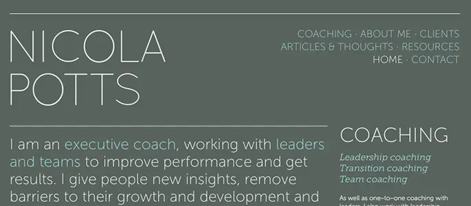 In the example above, the upper line leads the viewer’s sight line from the large heading on the left to the less expressive menu items on the right. It does this so effortlessly that the user doesn’t feel pulled to return to looking at the more distinctive heading. Likewise, the line below the heading smoothly moves the viewer’s sight line to the “Coaching” heading to the right, which prevents the user from ignoring the offer note placed on that side.