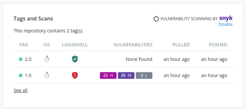 Docker Hub Vulnerability Scanner seems like a natural choice for many companies utilizing Docker Hub. The scanner itself is an implementation of another open-source tool Snyk which provides good coverage of known security issues of container images. For many teams who are just beginning to use the scanning capabilities it’s just a matter of activating that feature on their account. Nevertheless, it’s only accessible on the paid tier of Docker, so the decision might be dependent on the financial aspect. With the new Docker policy for many, it might be obligatory to switch to paid version either way. For smaller teams and cost-aware projects, I would recommend choosing either Trivy or Clair.