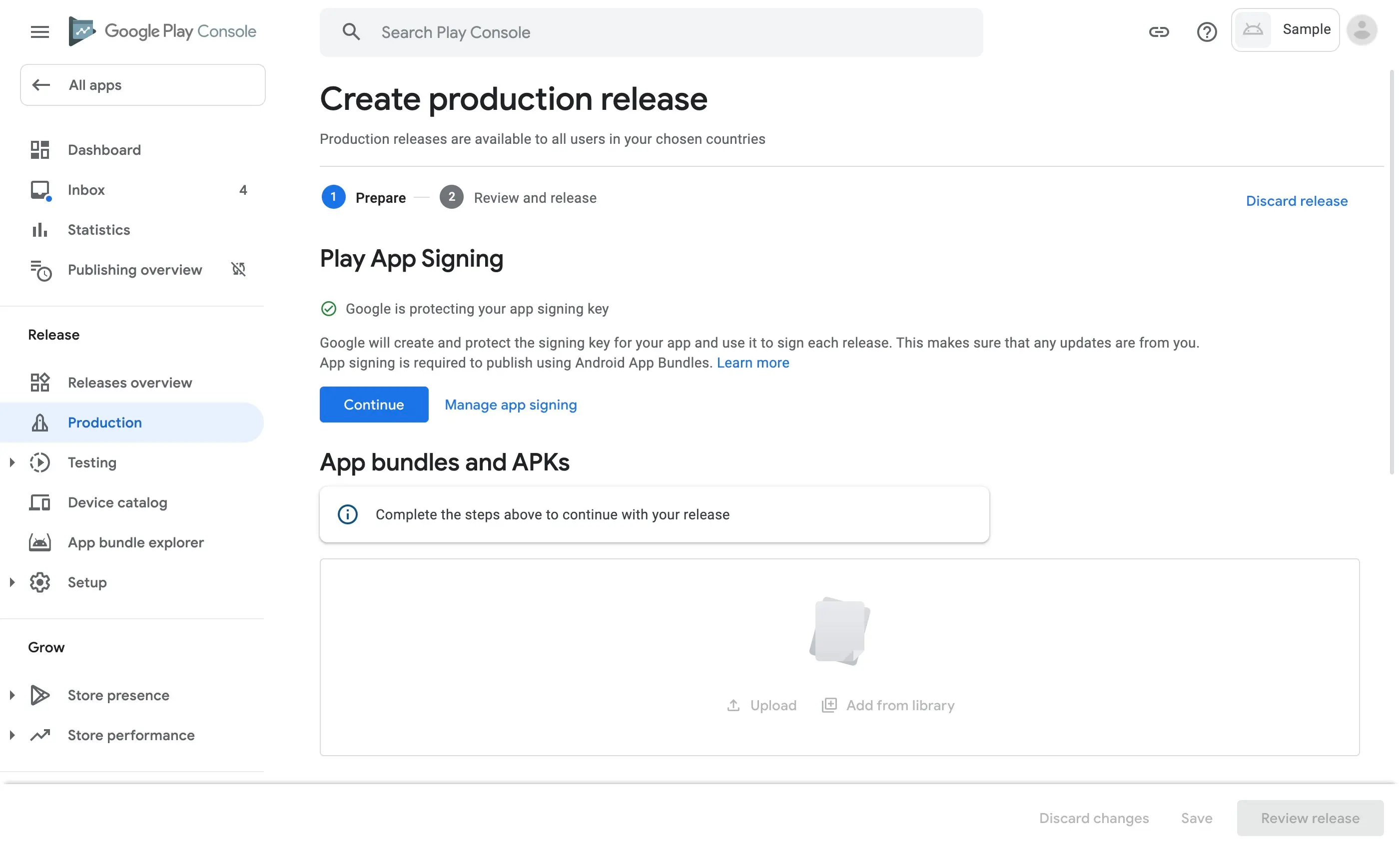 8. Upload your APK or app bundle