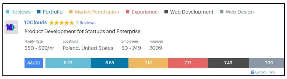 For more information about 10Clouds rating at GoodFirms, click here.