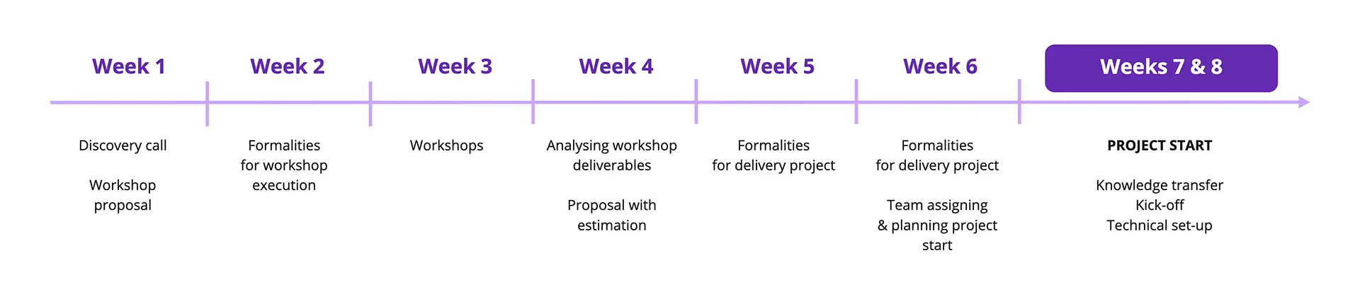 Even assuming that all decisions can be taken quickly, there is additional time related to discussing workshops, and then carefully going through the actual project proposal. What is more, the knowledge gathered during the workshops may not be fully transferred to the final project team.