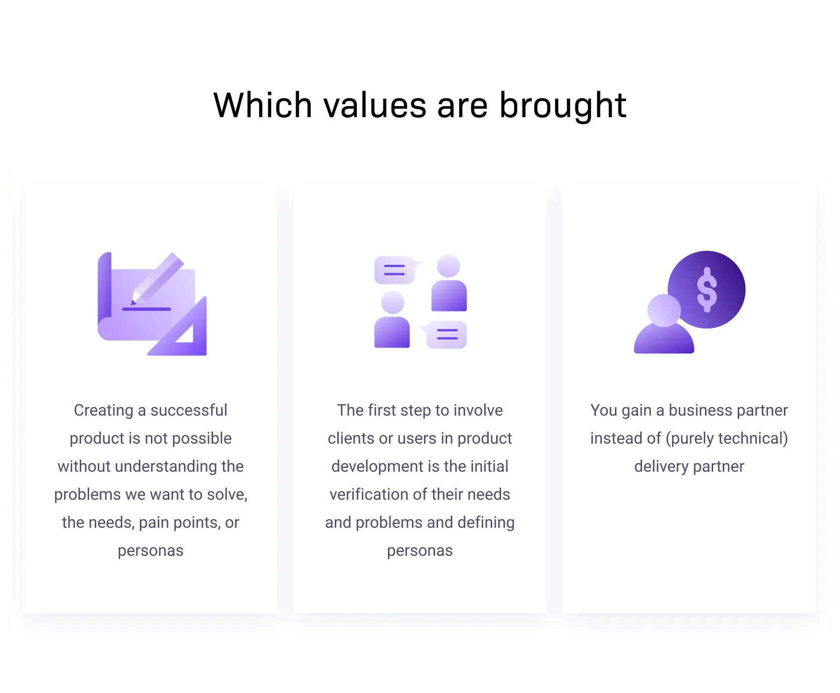 Only after gathering the substantial insights on the end clients’ needs will a good agile team develop an action plan for the product and determine the necessary resources and timelines - with full focus on the most crucial functionalities to meet your business goals and address real needs of your users.