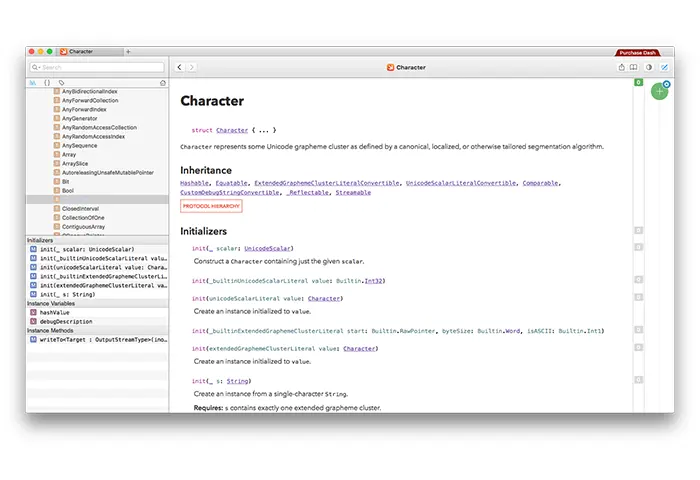 It’s an application that enables you to keep versions of various documentations locally (like programming languages, frameworks) and easily search for methods, definitions and more.. There is everything you need: bash, git, js, redis, lodash, meteor, ansible, clojure or aws.