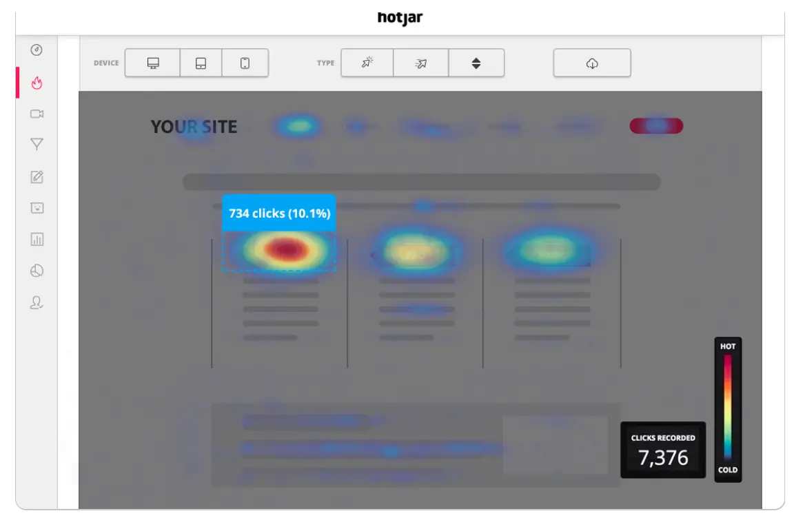Why is this useful? It will allow you to play around with your information hierarchy, your user journeys, and the positioning of your calls to action to make for a truly seamless user experience. HotJar offers a free trial so you can see exactly how it works for your product!