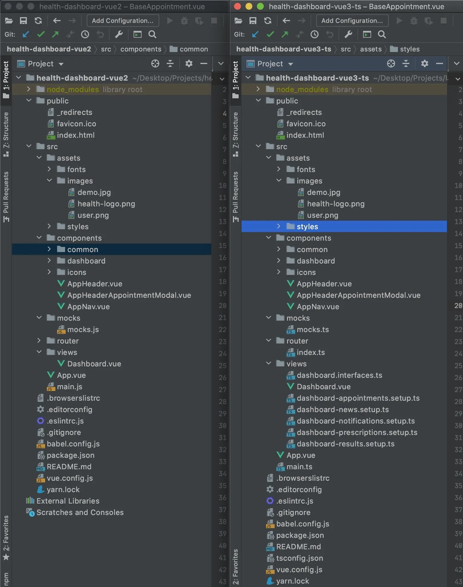 The project structure could have easily been the same, but I wanted to move some part of the business logic out of Dashboard.vue to better show you the separation.